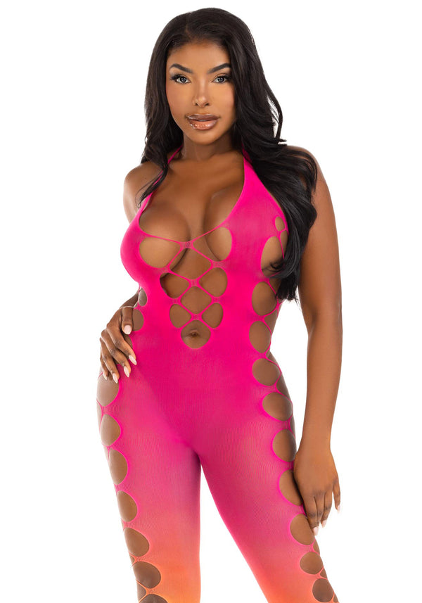 Der Ombre Faux Lace Up Footless Bodystocking von Leg Avenue ist die perfekte Wahl für alle, die nach einem einzigartigen und eleganten Bodystocking suchen, der durch seinen mehrfarbigen Ombre-Farbverlauf besticht. Dieses exquisite Lingerie-Stück kombiniert stilvolle Transparenz mit einem verführerischen, offenen Design und bietet dabei höchsten Tragekomfort dank des elastischen Materials. Die raffinierte Schnürung und der verstellbare Neckholder ermöglichen eine individuelle Anpassung und unterstreichen Ihre Silhouette auf geschmackvolle Weise. Ohne Fuß gearbeitet, bietet dieser Bodystocking vielseitige Styling-Optionen und passt hervorragend zu High Heels oder freiem Fuß, um verschiedene erotische Looks zu kreieren. Ob als sinnliches Highlight in der Lingerie-Kollektion oder als gewagtes Accessoire für besondere Nächte, dieses Modell bringt sommerliche Leichtigkeit und verführerische Eleganz zusammen. Dank der hochwertigen Verarbeitung von Leg Avenue ist der Bodystocking nicht nur optisch ein Hingucker, sondern überzeugt auch durch seine langlebige Qualität. Pflegeleicht und angenehm auf der Haut sorgt er dafür, dass Sie sich rundum wohlfühlen und Ihre Ausstrahlung optimal zur Geltung bringen können. Mit diesem Ombre-Bodystocking setzen Sie ein modisches Statement und erleben die perfekte Kombination aus Komfort, Stil und verführerischer Wirkung - ideal für alle, die sich mit hochwertiger, erotischer Lingerie von ihrer sinnlichen Seite zeigen möchten.