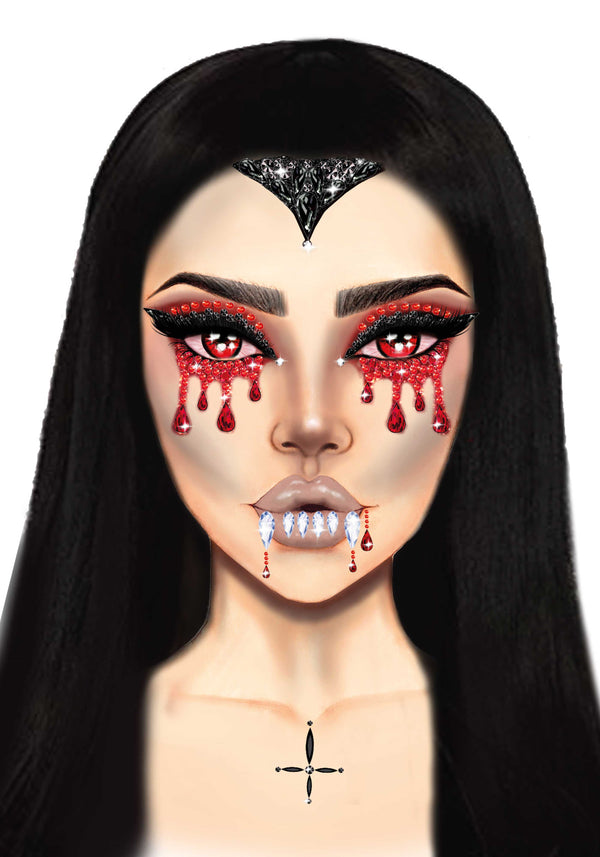 • Einfach anzubringende Vampir-Klebegesicht-Juwelen