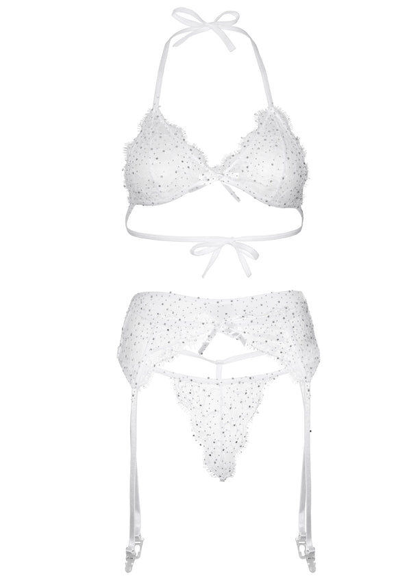 Sexy Dessous-Set mit BH-Top, Strumpfhalter & String in Weiß | Leg Avenue