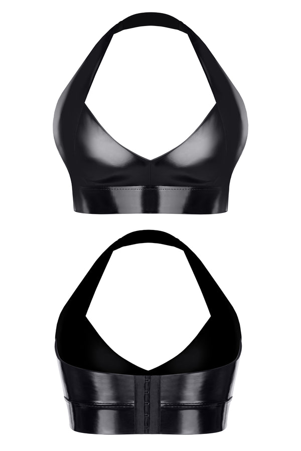 Edles Lack-Top TDBettina001 in Schwarz mit raffiniertem Dekolleté | Demoniq