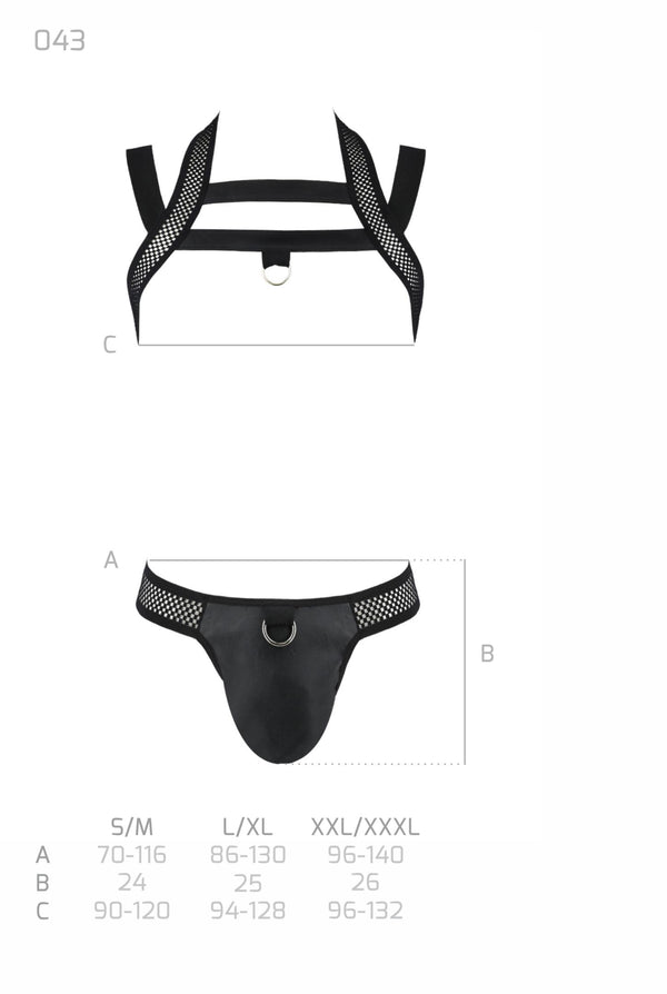 Harness Set mit Netzeinsätzen, Metallring und Gummibändern | Passion Menswear