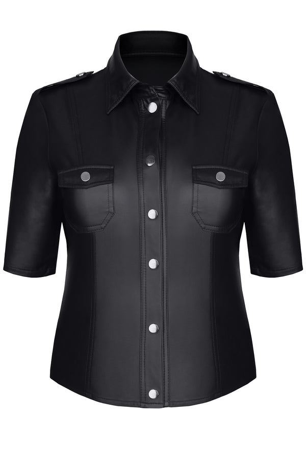 Wetlook Military Bluse TDLotte001 - Schwarze Fetish Jacke im Army Style | Demoniq